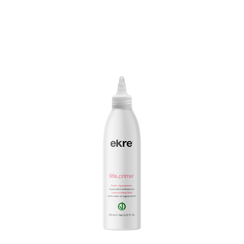 Life.Primer è il fluido pre-shampoo Ekre che libera la cute dalle impurità e la prepara alla detersione. La sua formula avanzata rigenera in profondità: l’acqua attiva di limone bio svolge un’azione purificante e astringente, regola il sebo e dona freschezza alla cute, mentre l’olio essenziale di timo deterge in profondità e lenisce il cuoio capelluto, limitando le secrezioni di sebo.